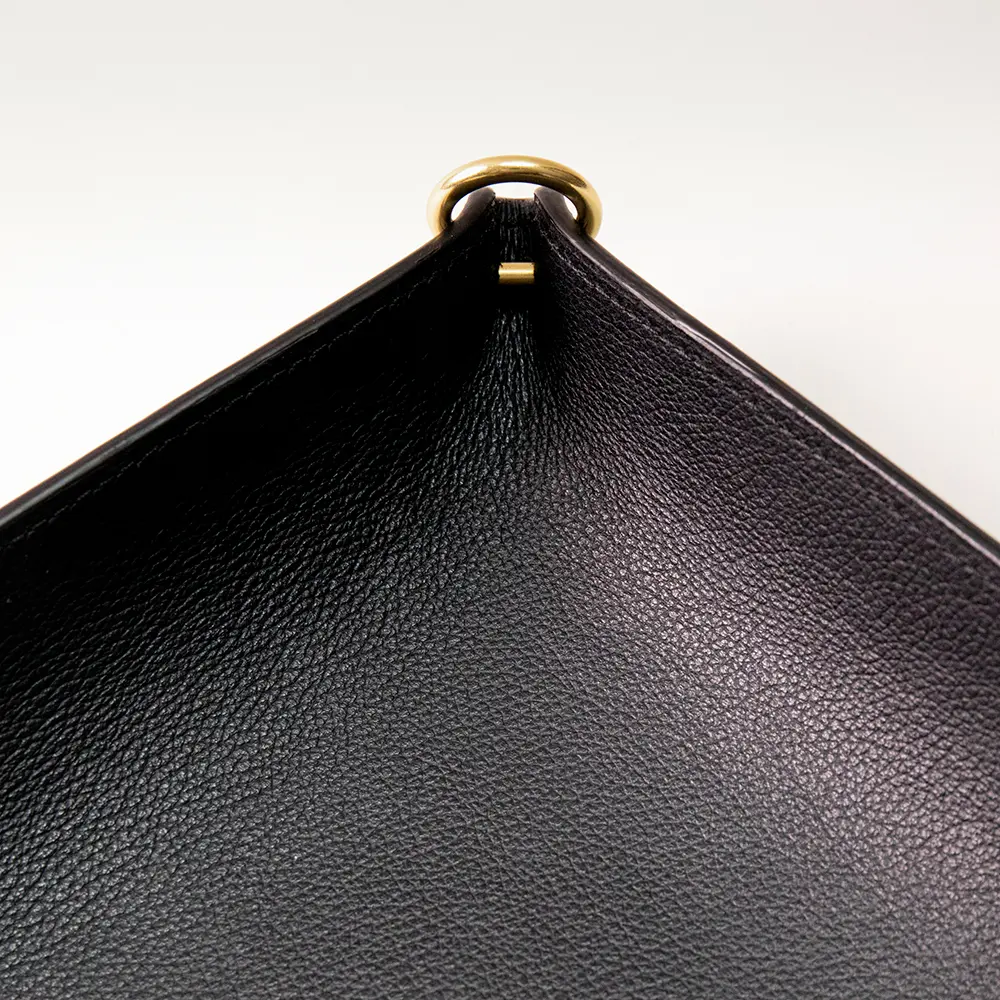 Introducing the Chosen Leatherwork Monarch Noir Leather Tray — a luxurious upgrade to your everyday organization. This refined valet tray features a striking black-on-black design, with a premium Italian pebbled grain calfskin leather interior and a softly pebbled, vegetable-tanned Italian leather exterior.